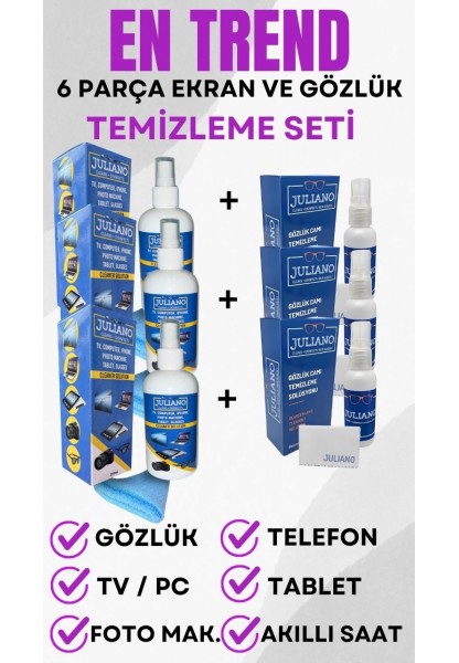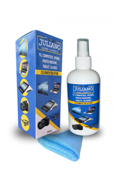 JULIANO LCD Temizlik Seti Paket İçeriği: Koruyucu ve Parlatıcı Temizleyici Spreyi - 250ml, Mikrofiber Temizlik Bezi: 25cm x 25cm