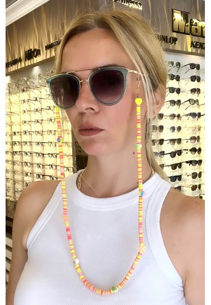 Fimo Sarı Turuncu Renkli Gözlük Zinciri - Kolye - Bileklik