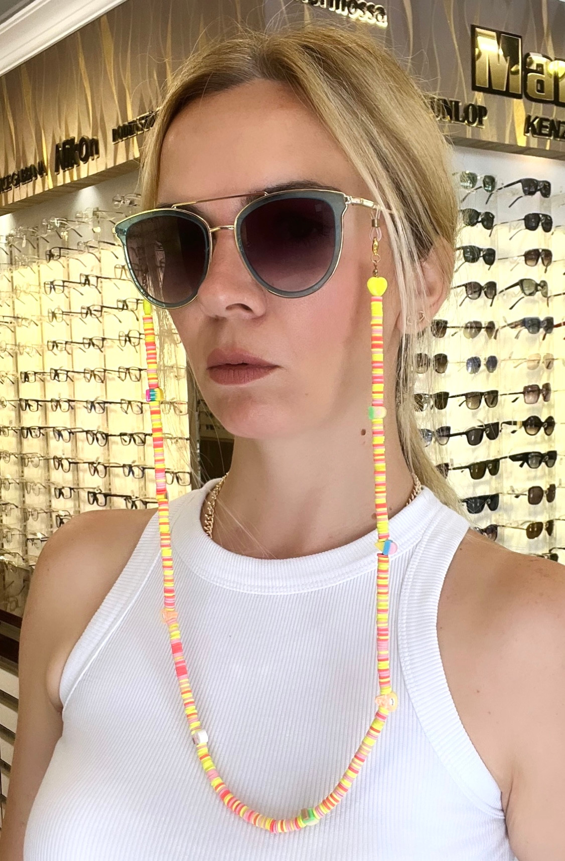 • Fimo Sarı Turuncu Renkli  Gözlük Zinciri - Kolye - Bileklik
