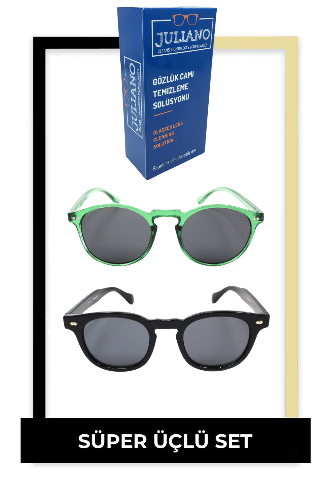 2'li Juliano Güneş Gözlüğü Seti + Gözlük Temizleme Solusyonu