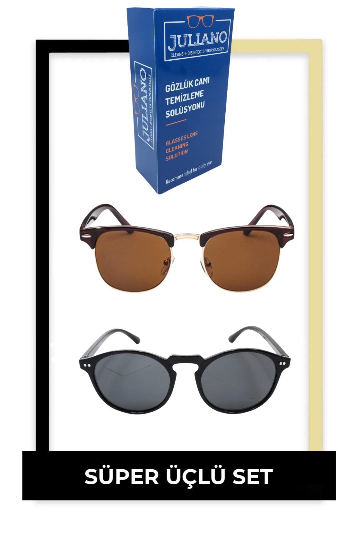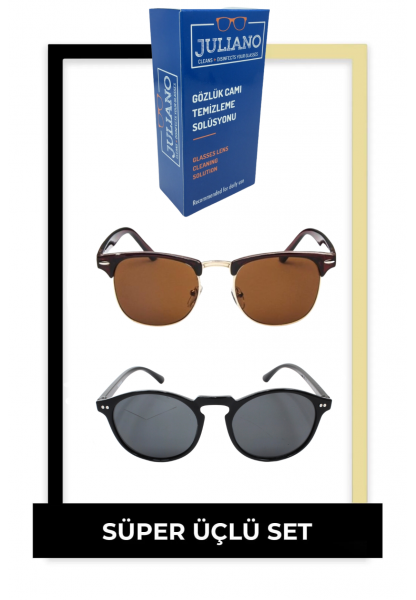 2'li Juliano Kadın Güneş Gözlüğü Seti + Gözlük Temizleme Solusyonu